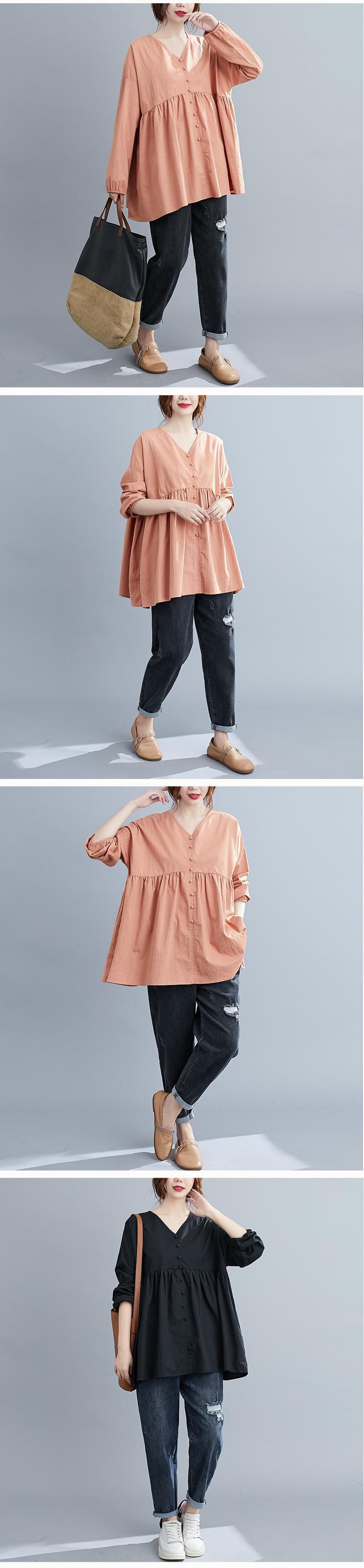 Vネックドールシャツ長袖トップ女性脂肪mm秋ルーズラージサイズ甘い年齢を減らす真菌ステッチプルオーバーシャツ ロング 大きめサイズ 大人ガーリー スウィート キュート カジュアル オータム 秋物 TB2-8 TB2-829442357115