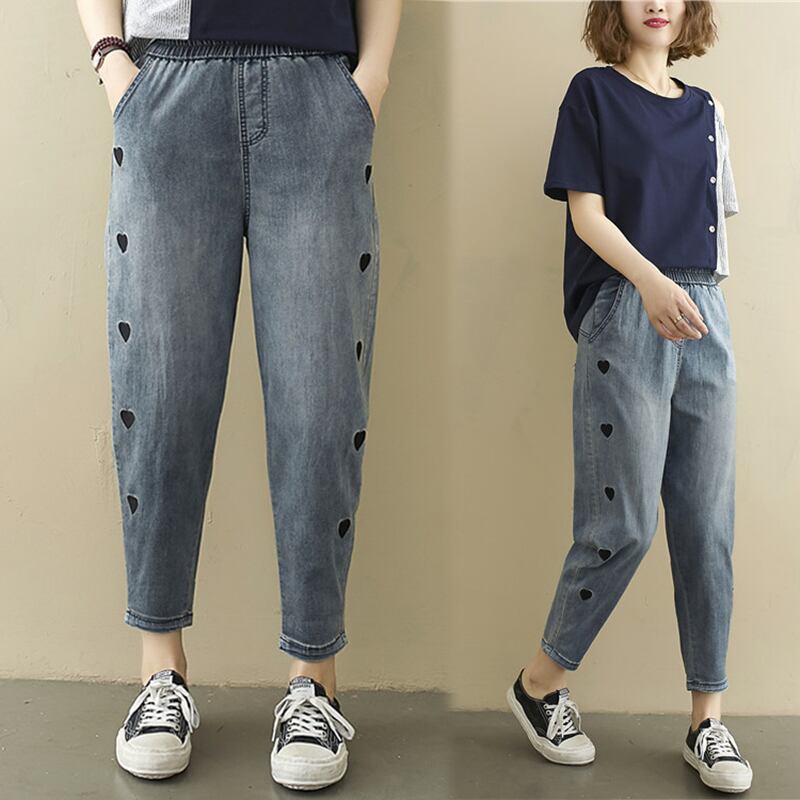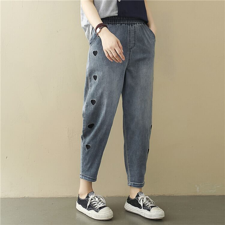 2021年夏のファットmmラブ刺繍ジーンズ伸縮性ウエストルーズで細い足9点ハーレムパンツ エラスティック サマー 夏物 TB2-8 TB2-854803407996