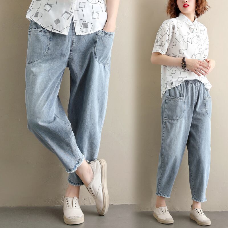 2019夏新バージョンのルーズで薄いキャロットパンツラージサイズワイルドジーンズレディースフィート9ポイントハーレムパンツ 大きめサイズ サマー 夏物 TB2-8 TB2-8748833094