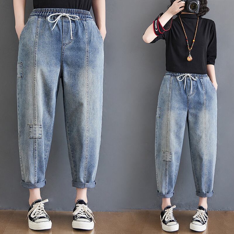 ラージサイズファットmmホワイトパッチライトカラージーンズ伸縮性ウエストシンルーズハーレムパンツメス春2021新品 レッド エラスティック 大きめサイズ スプリング 春物 TB2-8 TB2-853689659171