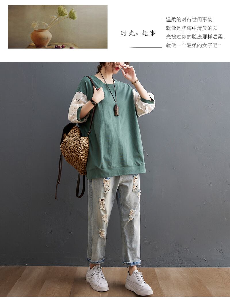 ラージサイズファットmmコントラストカラーステッチ中空Tシャツ女性夏ルーズで薄いワイルドデザイン半袖Tシャツトップ 大きめサイズ サマー 夏物 TB2-8 TB2-854322237983