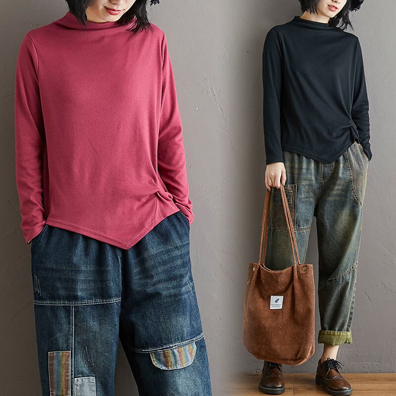ハーフハイネックTシャツレディース長袖ブラウス、ファットmm、秋のルーズバージョン、不規則な裾、薄手のボトムシャツ ロング オータム 秋物 TB2-8 TB2-833164681033