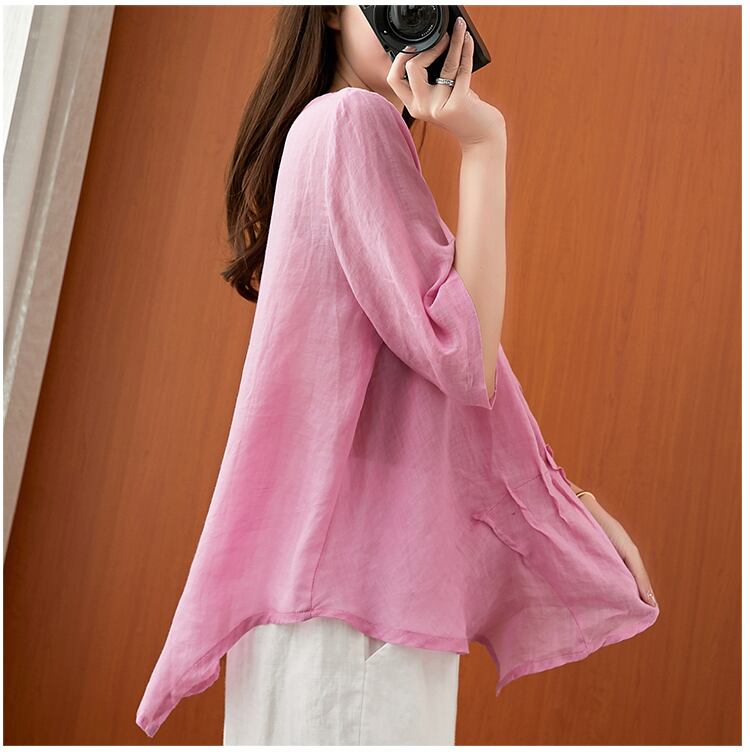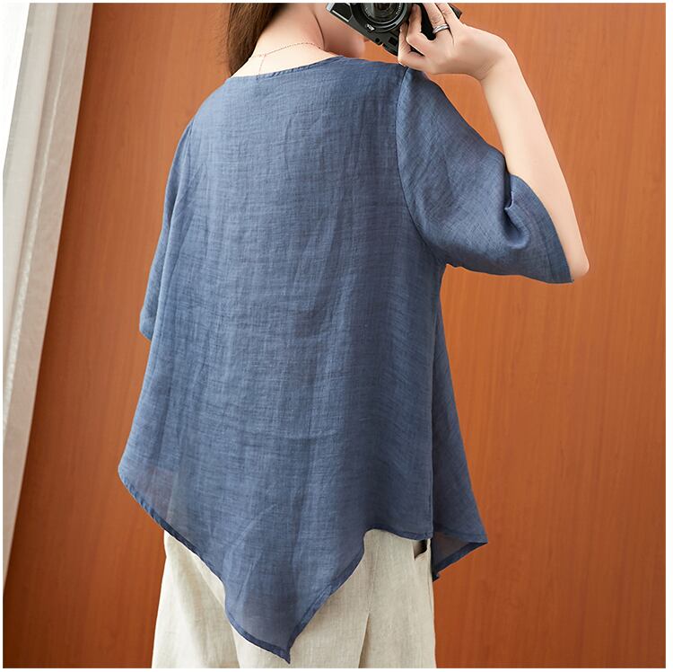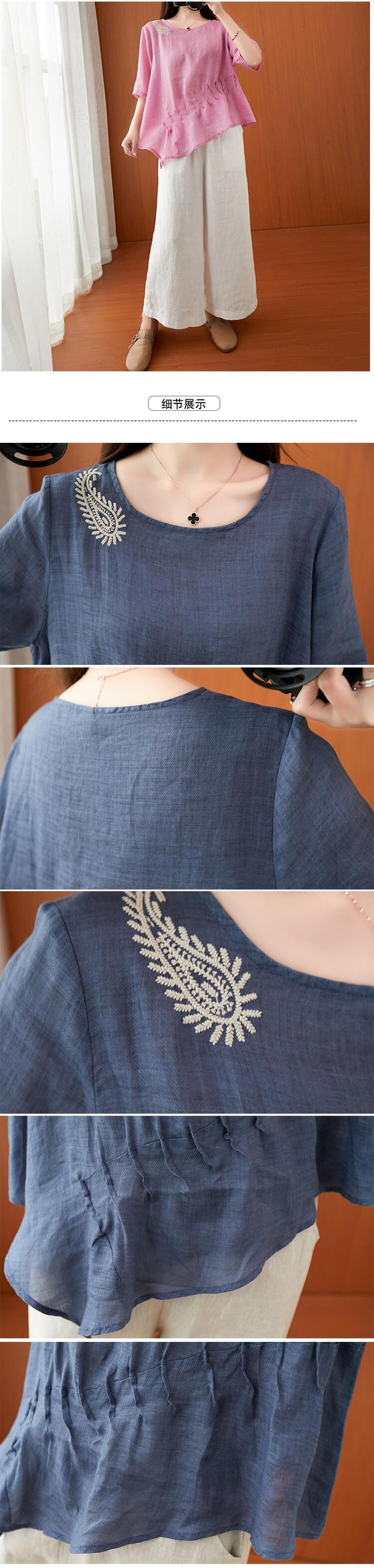 2021年夏の新しいスタイルの文芸刺繡綿とリネンの半袖Tシャツの女性は大きなサイズのステッチの不規則なラミートップを緩めます コットン 刺繍 大きめサイズ サマー 夏物 TB2-12 TB2-1243950451509