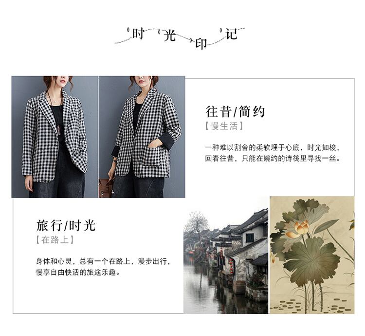 2020年秋の新製品スタイルの文学的なレトロなルーズカジュアルコットンとリネンチェック柄のショートスーツジャケットの女性 オータム 秋物 TB2-12 TB2-1212281838175