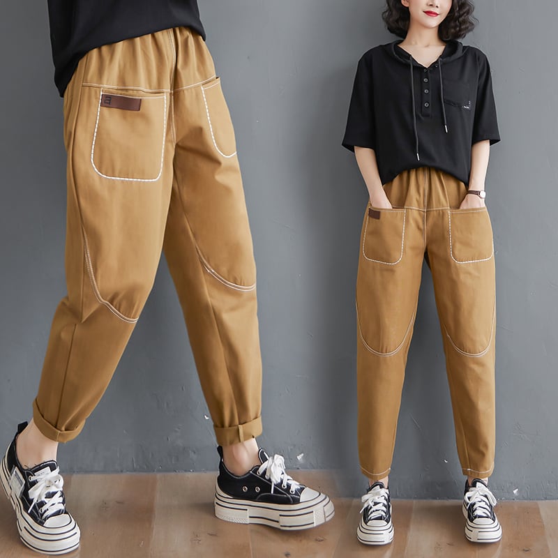 2021年春夏新作パンツ刺繍ダブルポケットは薄くカジュアルなオールマッチパンツ、ラージサイズのルーズハーレムパンツ女性 レッド 大きめサイズ スプリング 春物 サマー 夏物 TB2-12 TB2-1290565435001