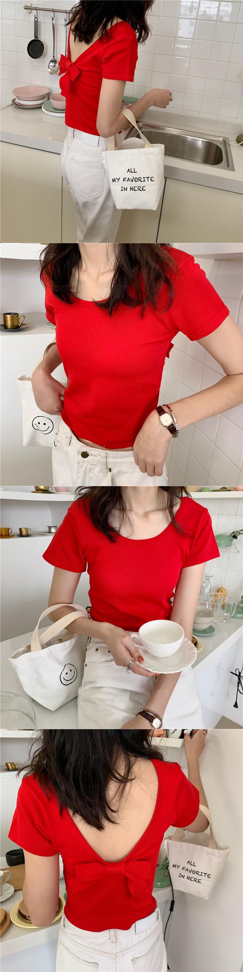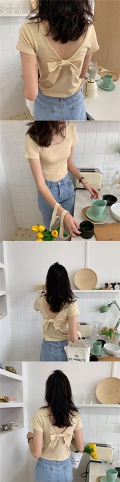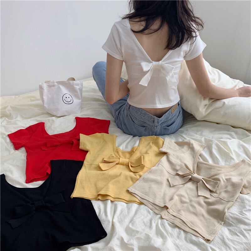 ニットTシャツ女性デザインセンスサマーボウ半袖スリムボトミング慎重にマシンホルターショートトップイン潮 リボン 夏物 TB2 TB220115589574