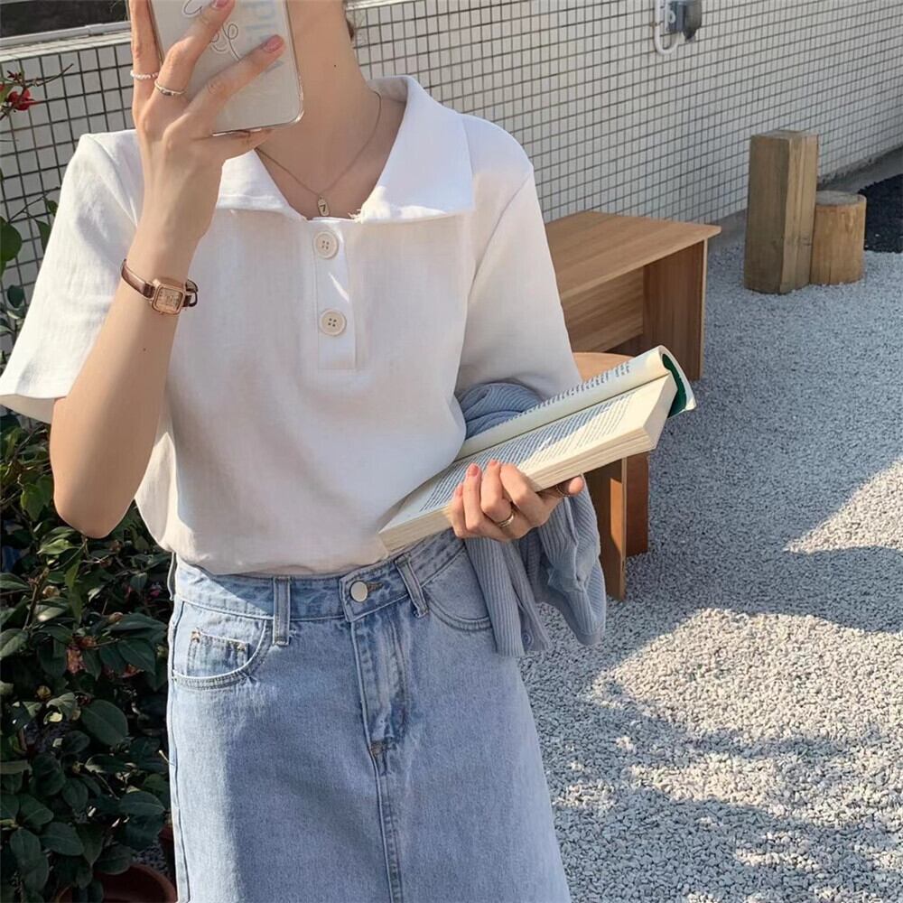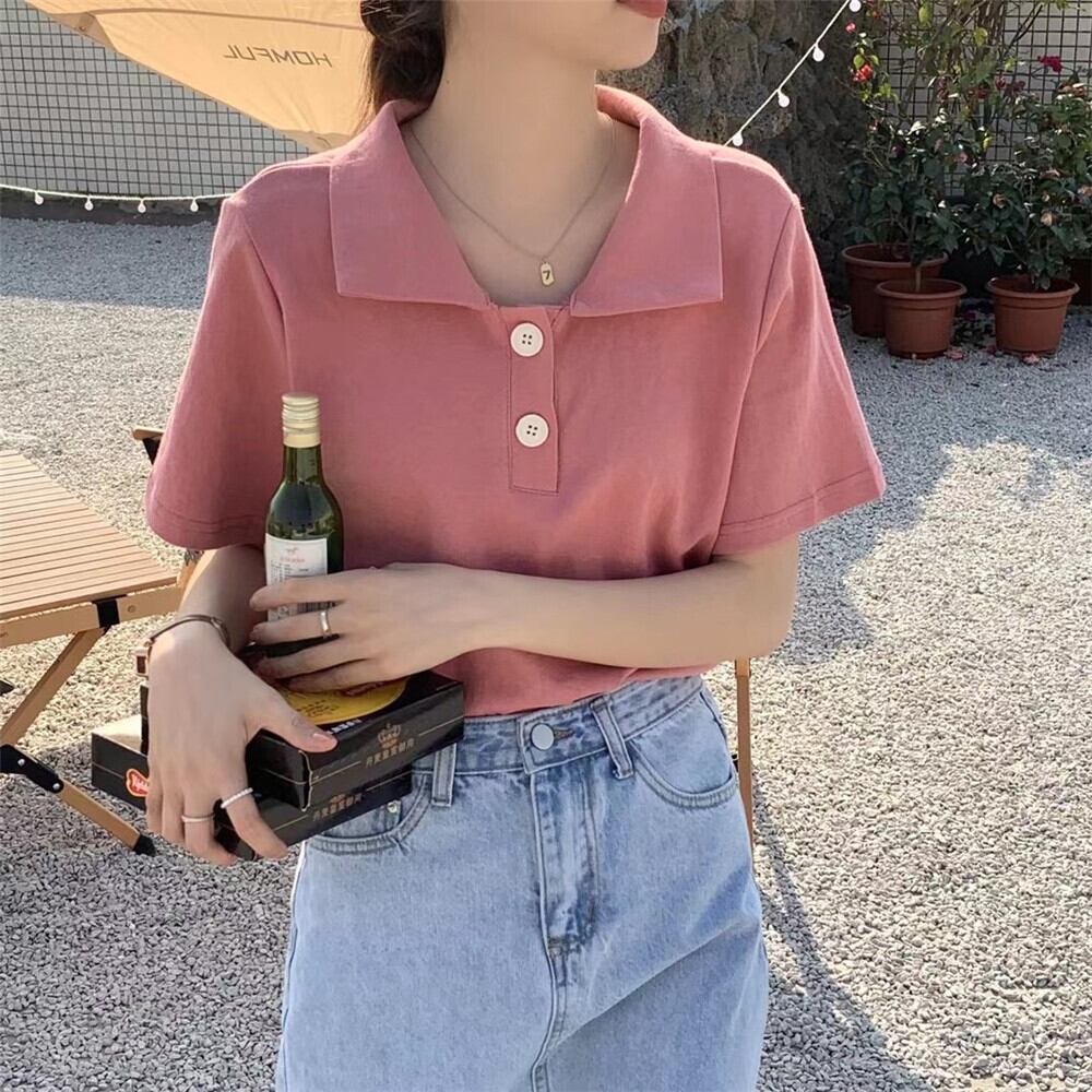 キャンディーカラーインシンプルワイルドポロカラースモールブレストルーズソリッドカラーカジュアル半袖Tシャツトップトレンディな女性 TB2 TB279690496537