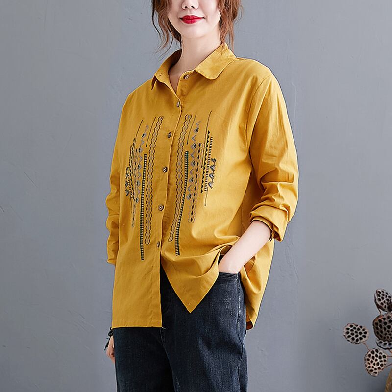 2021年春の新作文芸刺繡コットン&リネンシャツレディース長袖ルーズ&シンブラウスオールマッチ気質シャツ ロング 刺繍 スプリング 春物 TB2-12 TB2-1262690836990