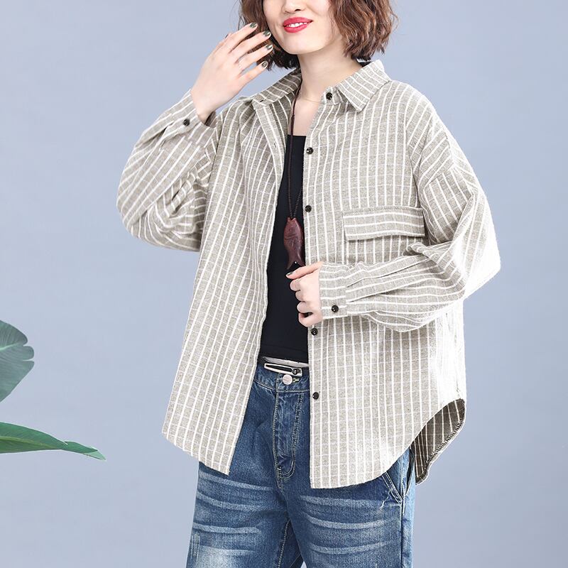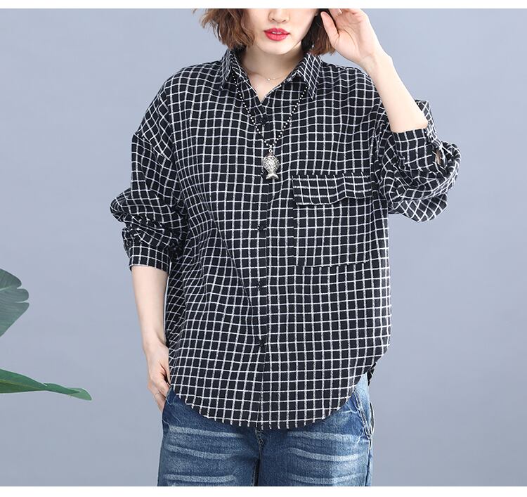 文学的なプラスサイズの春の新しい砂の格子縞のシャツ脂肪mmルーズで薄いカジュアルなオールマッチカーディガンシャツの女性 大きめサイズ スプリング 春物 TB2-12 TB2-1268009670547
