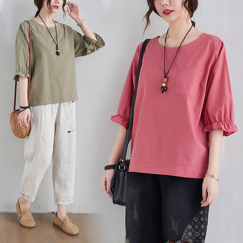 2021年のファットシスターバージョンの半袖Tシャツルーズカジュアルスリミング無地のシンプルな文学とアートプラスサイズのスリミング婦人服 大きめサイズ ソリッドカラー TB2-12 TB2-1215069430515