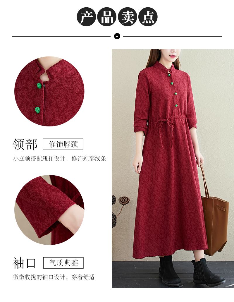 2020年秋の新しいレトロなスタンドアップカラーボタン長袖コットンとリネンジャカードドレスルーズで薄いカジュアルなビッグスイングスカート ロング オータム 秋物 TB2-12 TB2-1240263718361