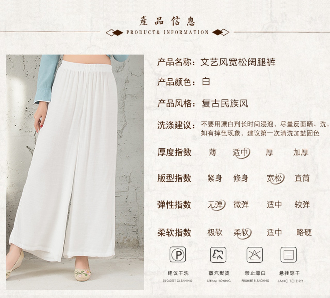 2021年夏のコットンとリネンのワイドレッグパンツレディースパンツエスニックスタイルレディースルーズラージサイズ薄いレトロエレガントパンツ 大きめサイズ サマー 夏物 TB2-12 TB2-1254331823932
