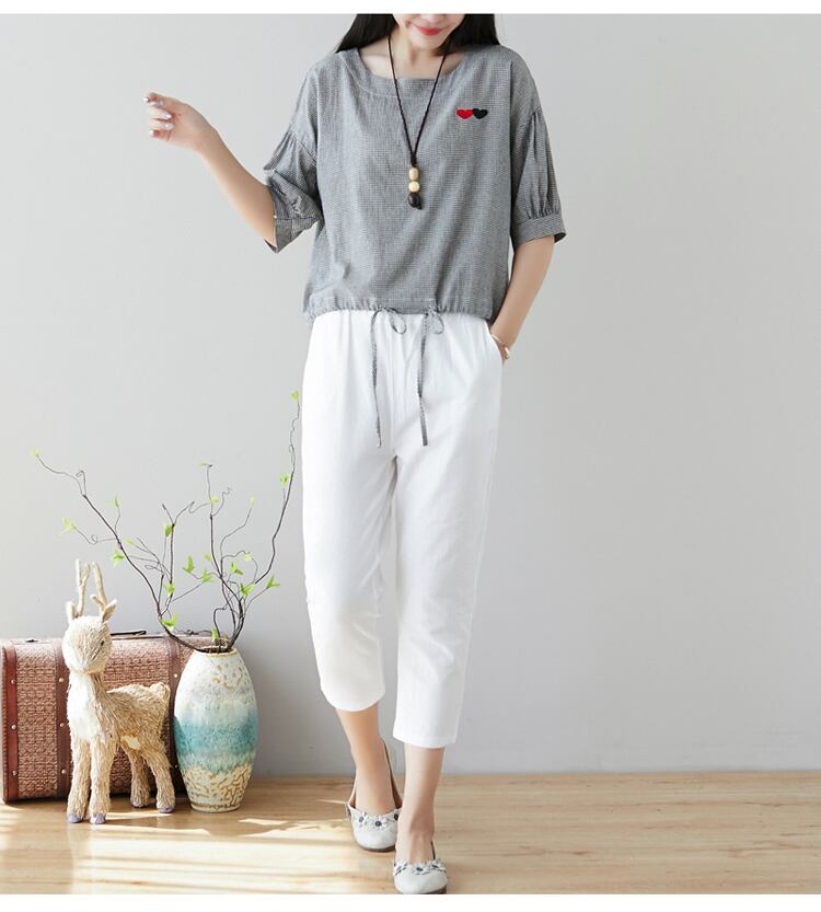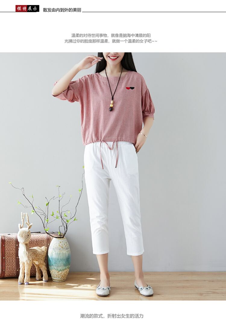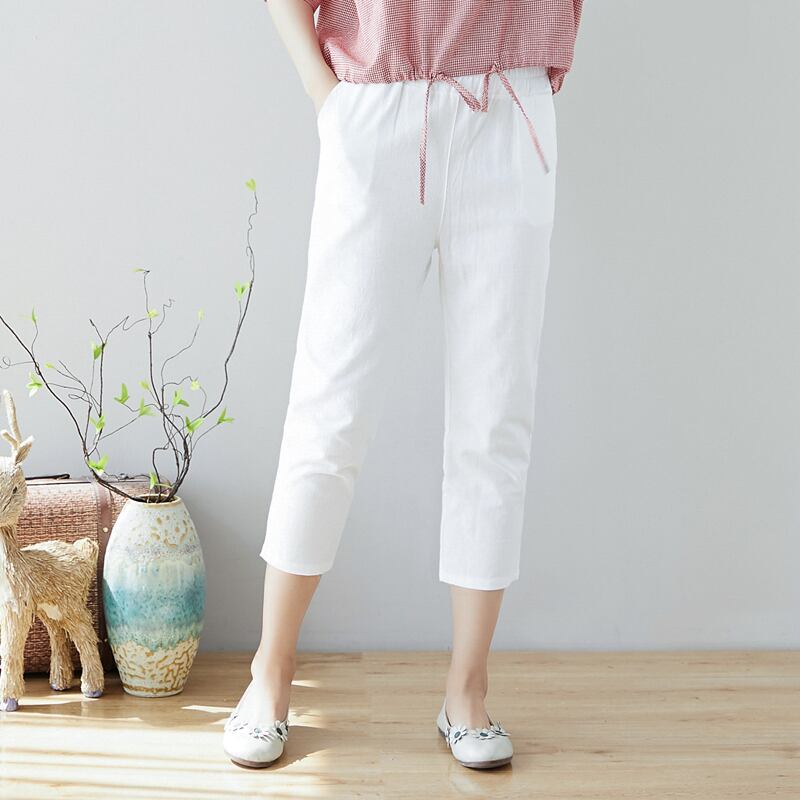 2021年夏のコットンとリネンの9ポイントパンツの女性は薄いセクションのワイルドな伸縮性のあるウエストラージサイズのカジュアルパンツの足を緩めますハーランパンツ エラスティック 大きめサイズ サマー 夏物 TB2-12 TB2-1226352698120