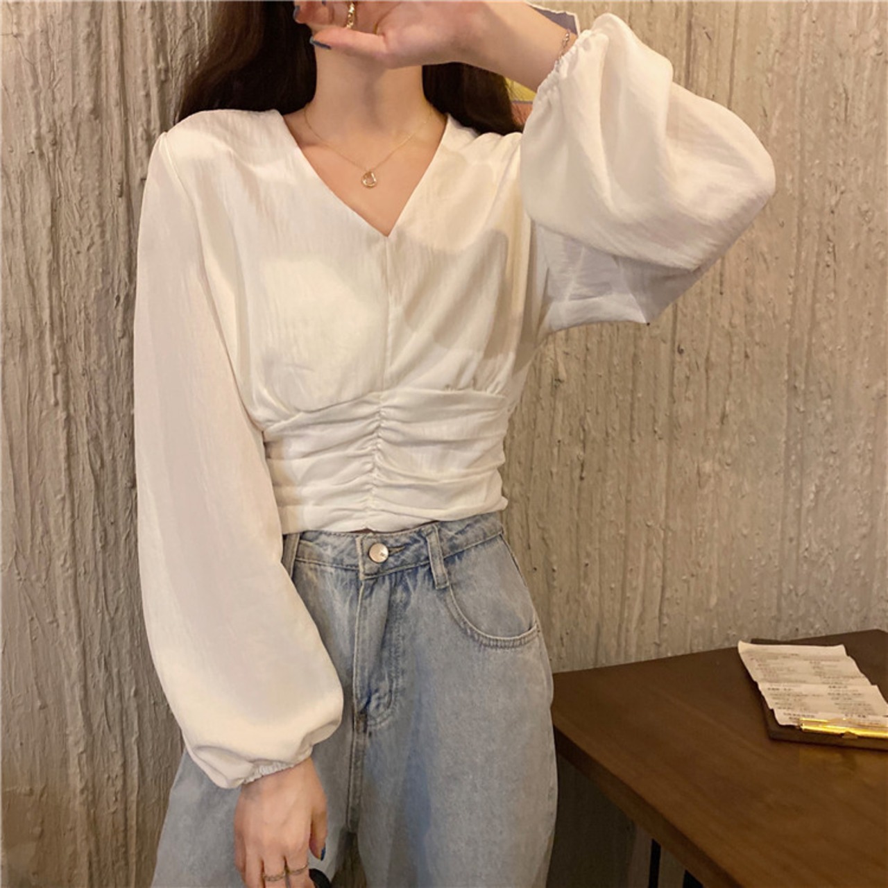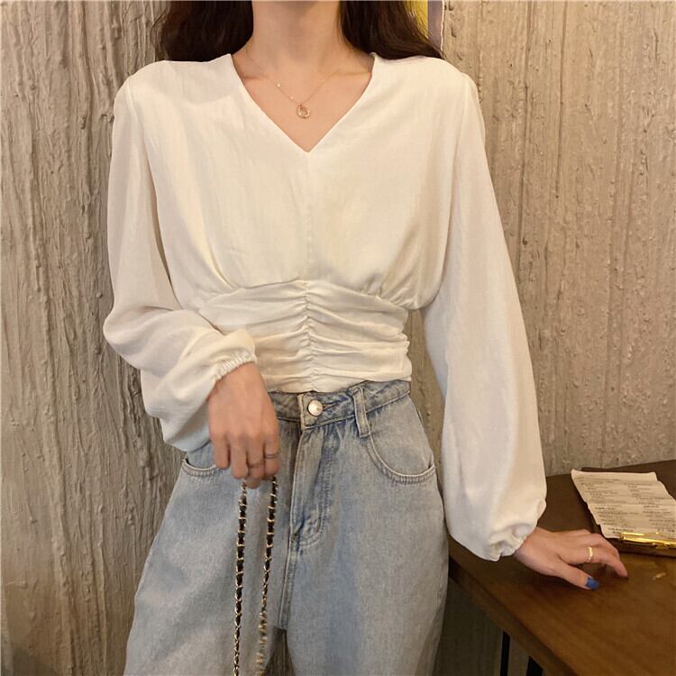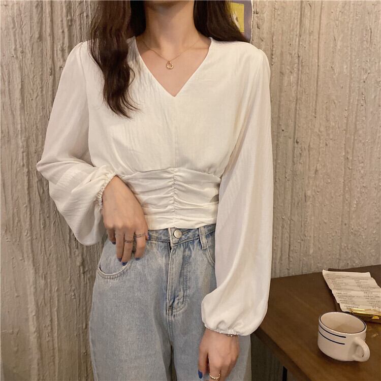 シャツ女性のデザインセンスニッチレトロフレンチランタンスリーブシャツ気質は薄いVネック半袖シャツトレンドでした ショート ロング TB2 TB213267532316