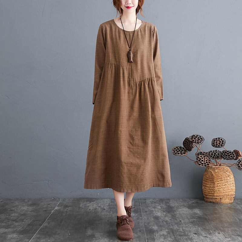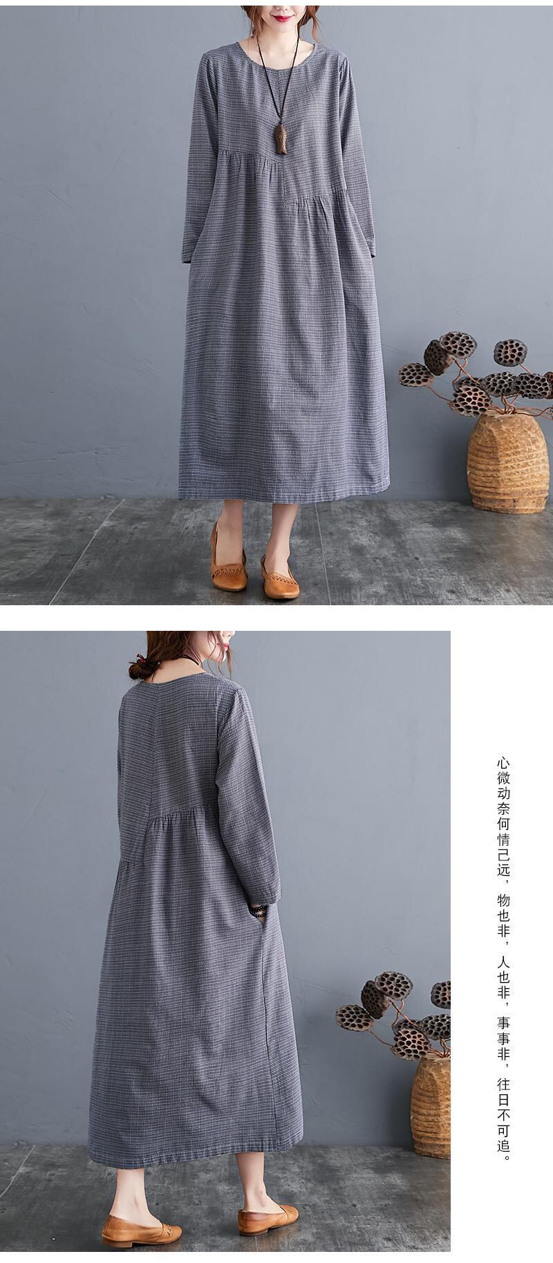 リネン長袖ドレス女性2021年春夏新スタイルラージサイズルーズカジュアルロングチェック柄コットンとリネンスカート 大きめサイズ スプリング 春物 サマー 夏物 TB2-12 TB2-1264624612808
