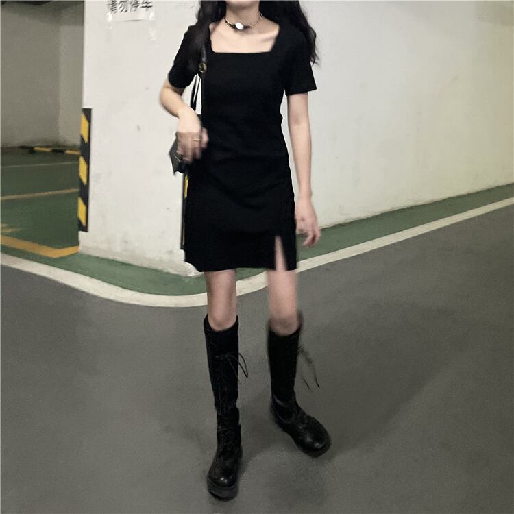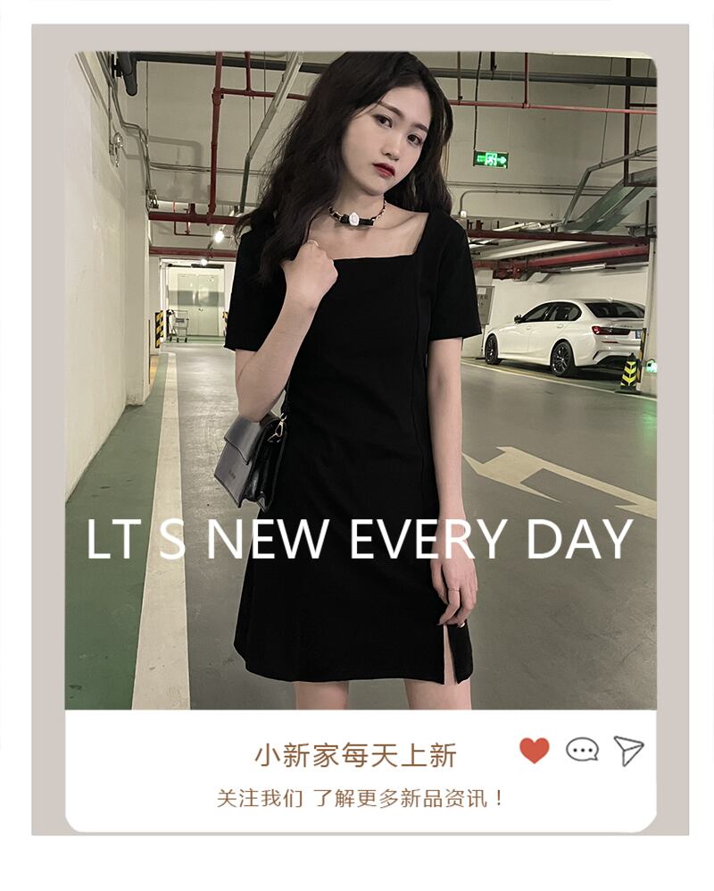 ショートドレス、気質、スプリットエンド、スタイル、薄い、スクエアネック、陰謀のリトルブラックドレス、フランスのレトロな夏2021新しいスタイル サマー 夏物 スクウェア TB2 TB270211737434