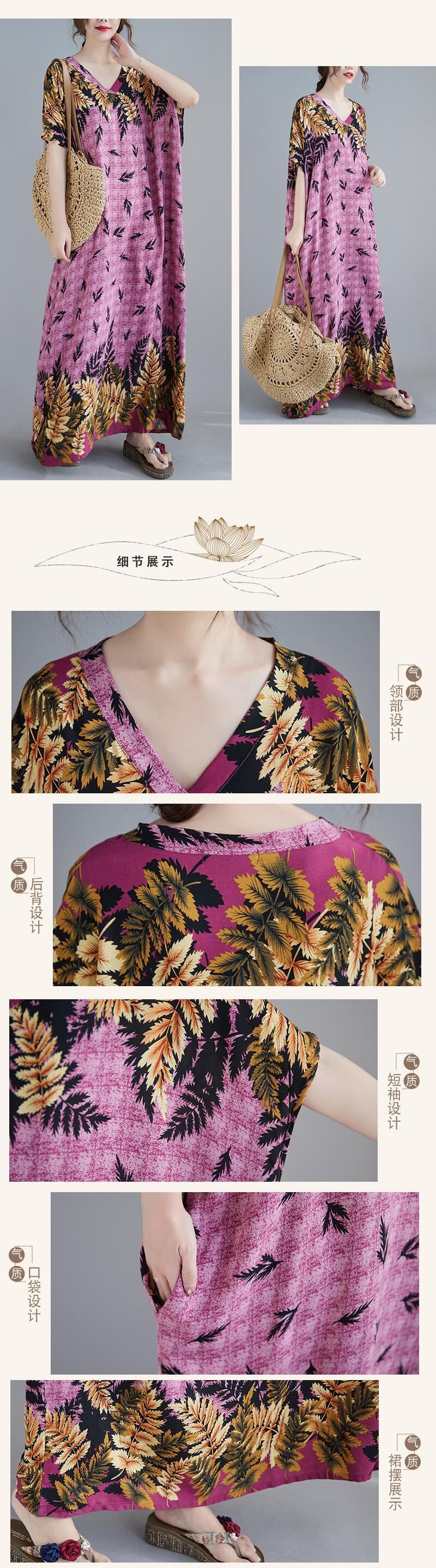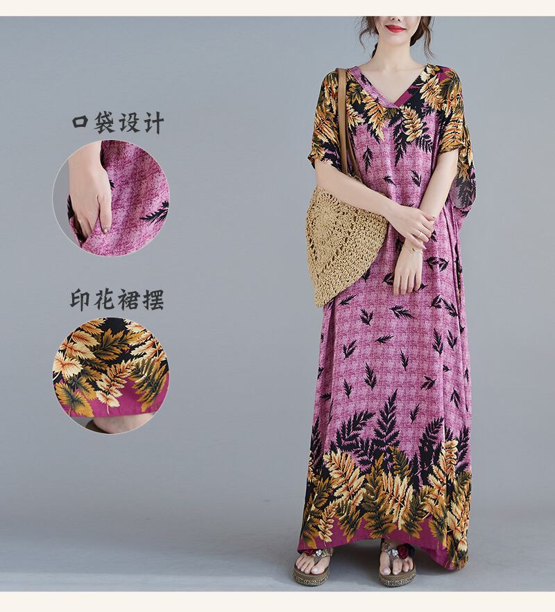2021年夏のレトロプリントローブファットMMプラスサイズレディース半袖ドレスルーズカバーミートカジュアルロングスカート 大きめサイズ サマー 夏物 TB2-12 TB2-124258100669