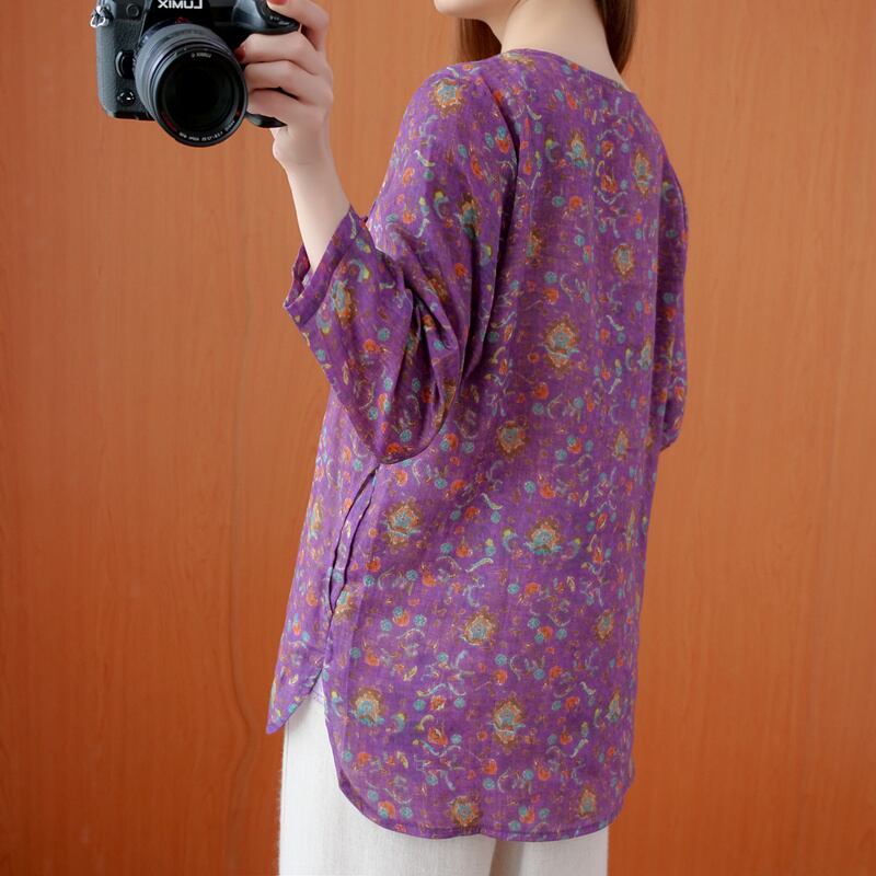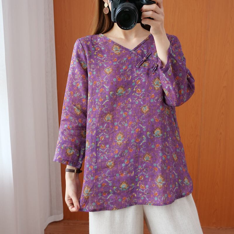 2021年春の新作文芸レトロエスニックスタイルVネックシャツ女性プリントフローラルルーズプルオーバーブラウス スプリング 春物 花柄 TB2-12 TB2-1284581339615