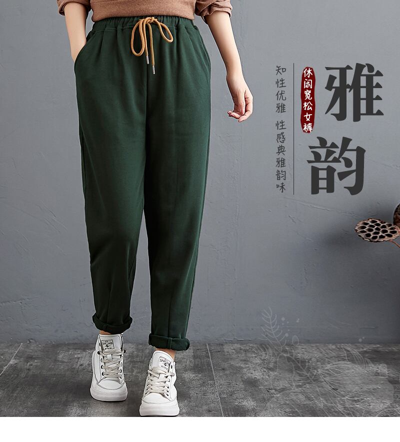 2021年春の商品レトロな無地の伸縮性ウエストハーレムパンツルーズワイルドニットコットンスウェットパンツレディースパンツ エラスティック スプリング 春物 ソリッドカラー TB2-12 TB2-1297811372186