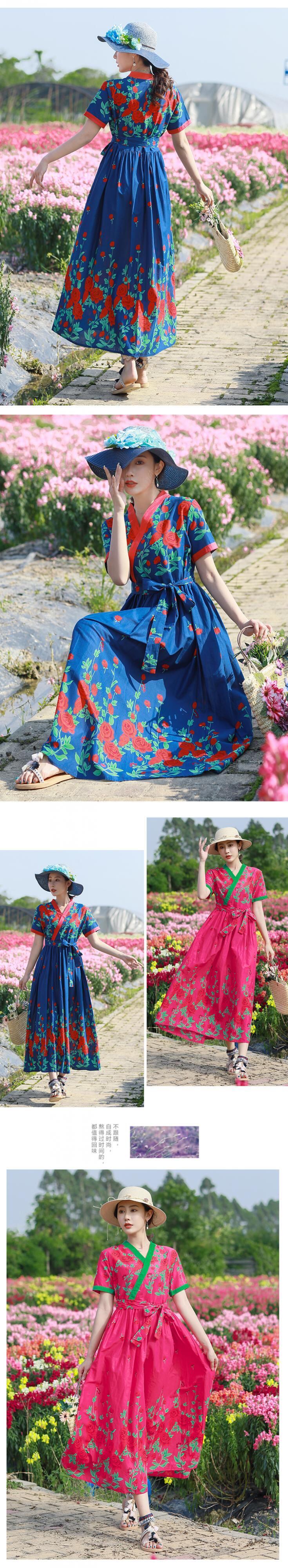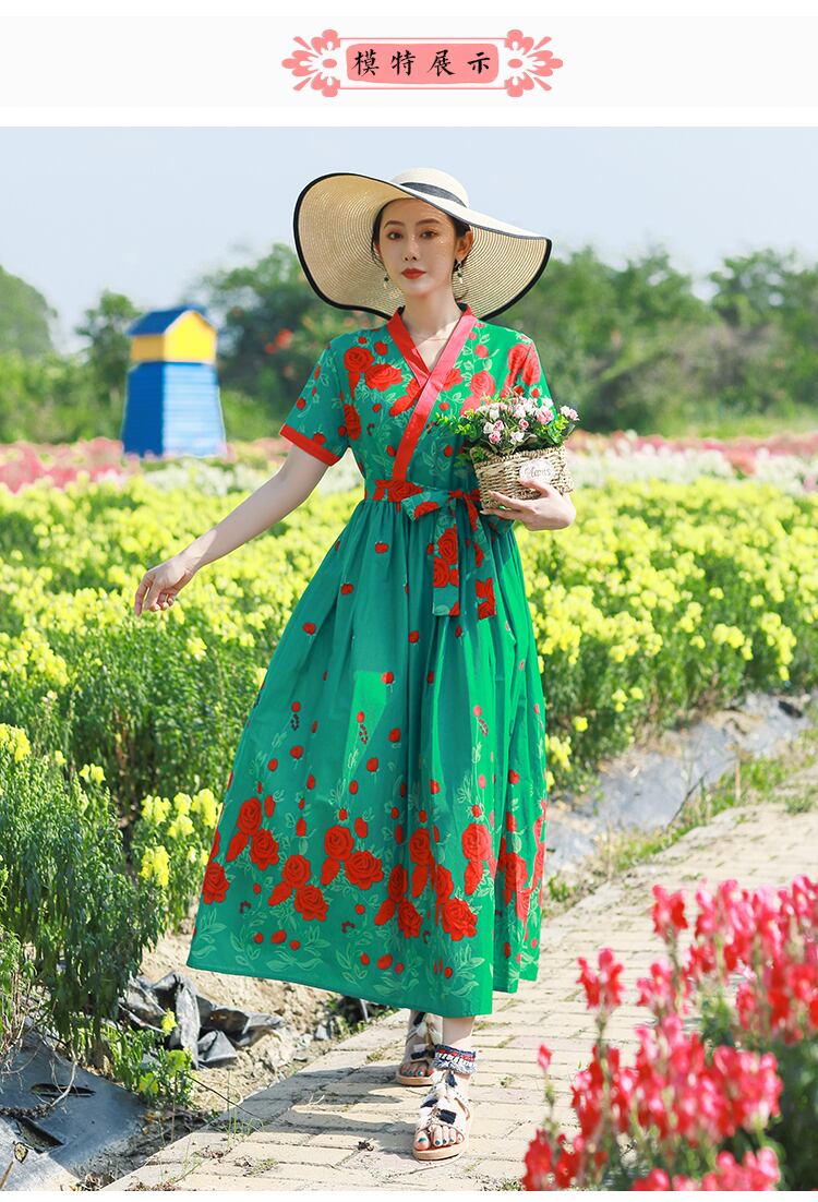 2021年新夏・漢服改良エスニック風プリント文芸レトロレース薄手ルーズラージサイズロングスカート 大きめサイズ サマー 夏物 TB2-12 TB2-1250739441573
