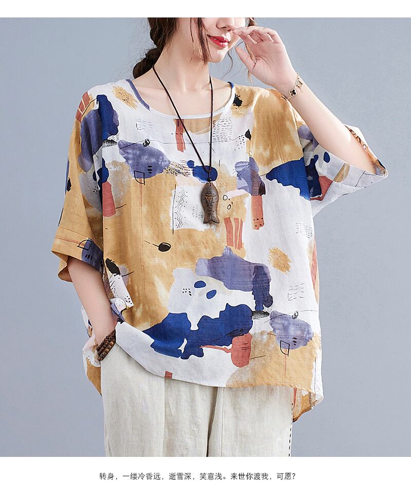 2021年の純綿の太った姉妹プラスサイズの半袖ルーズスリミングニューエイジを減らすバットスリーブトップの女性 コットン 大きめサイズ ピュア TB2-12 TB2-1276513780846
