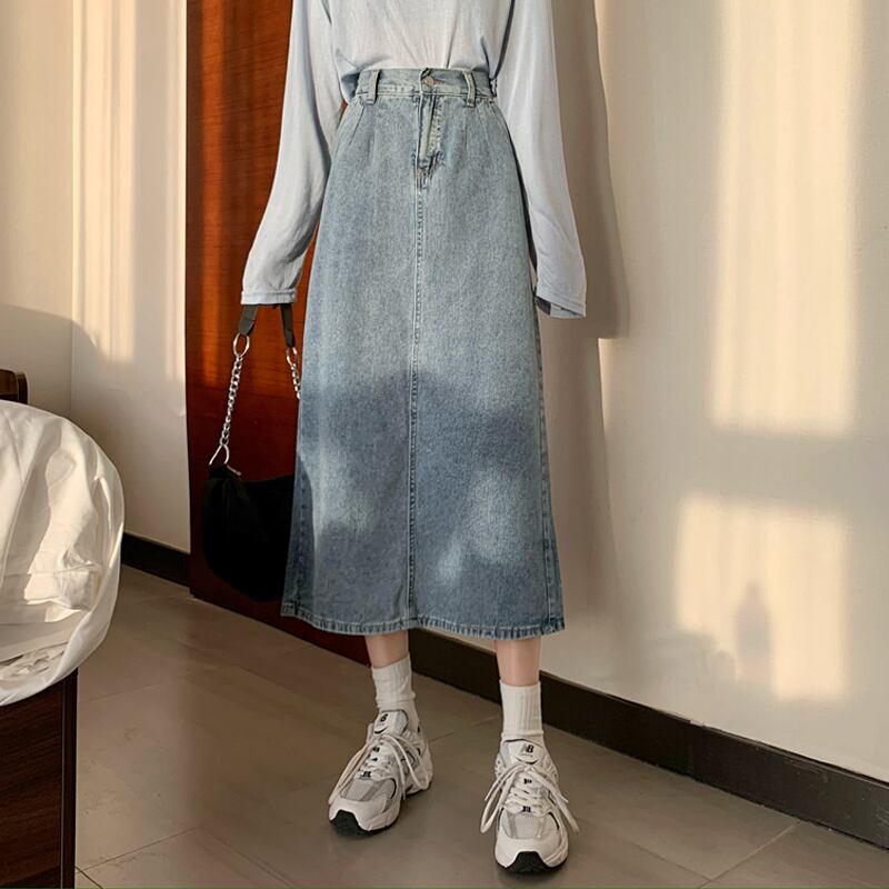 バックスリットデニムスカートレディースミドル丈Aタイプ2021夏新作スタイルルーズヒップと薄手のハイウエストスカート サマー 夏物 TB2 TB292197194475