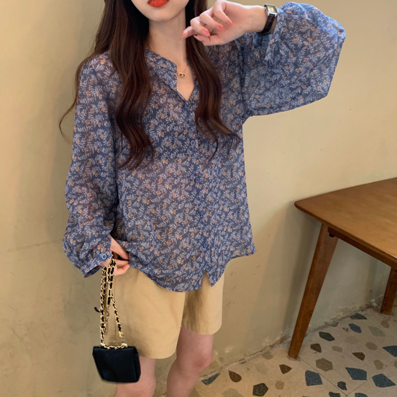 シフォンフラワーシャツ女性レトロ香港フレーブル長袖フローラルシャツデザインニッチ2021年春トップ ロング スプリング 春物 花柄 フラワーデザイン TB2 TB28770556408