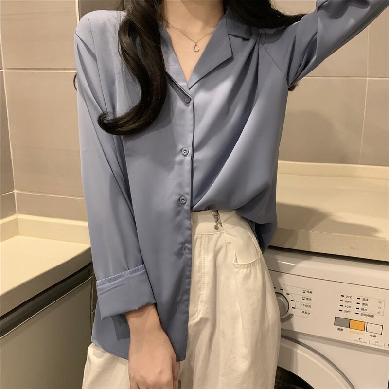気質オールマッチサテンホワイトシャツ女性デザインセンスニッチルーズドレープカジュアルオールマッチ長袖シャツ ロング TB2 TB256230278475