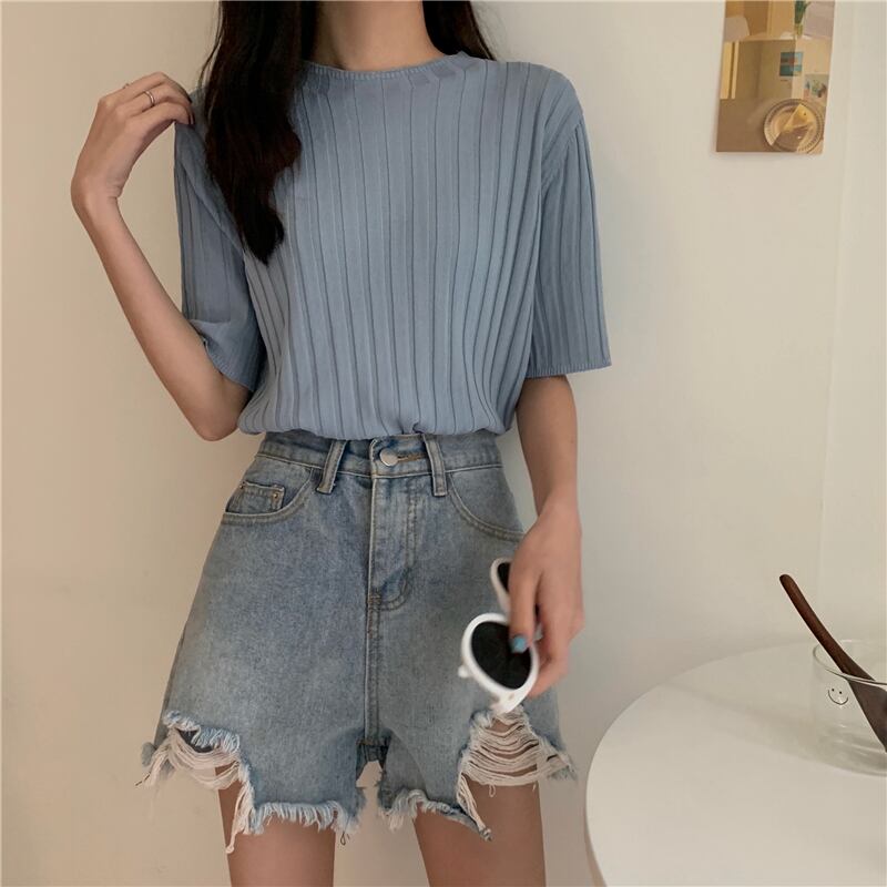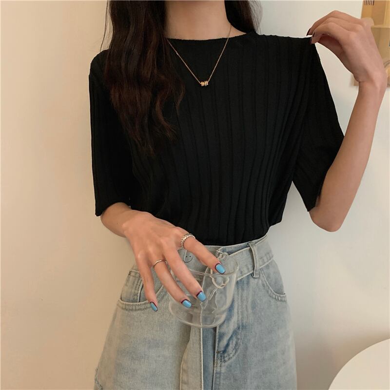 薄手のアイスシルクセーター女性用半袖2021年夏新バージョンのワイルドルーズ優しい風半袖トップス サマー 夏物 TB2 TB269446025293