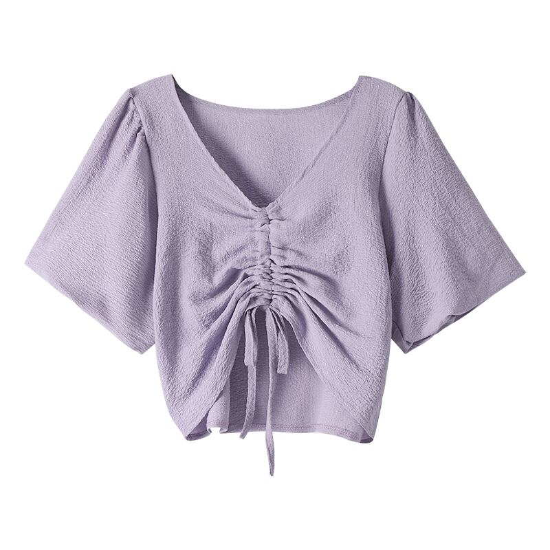 半袖デザインの女性のニッチなインスタイドVネックサマーブラウス女性の軽く調理された巾着塩シャツオールマッチショート 夏物 TB2 TB246995459721