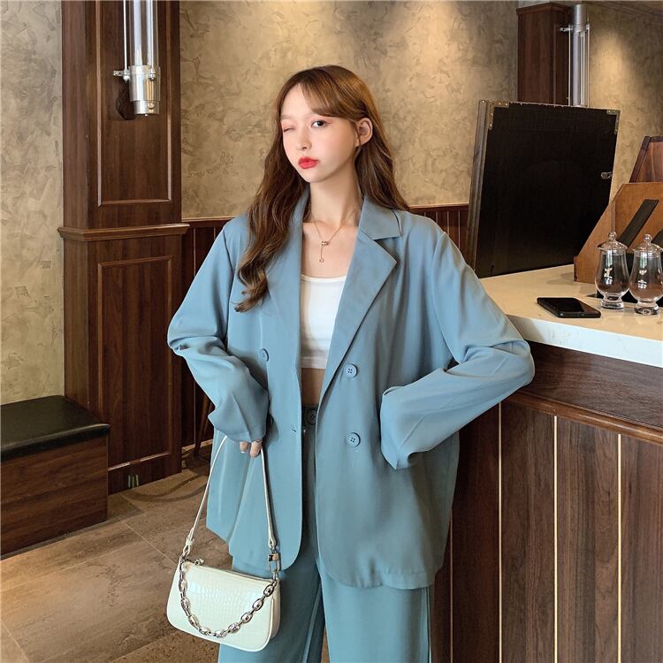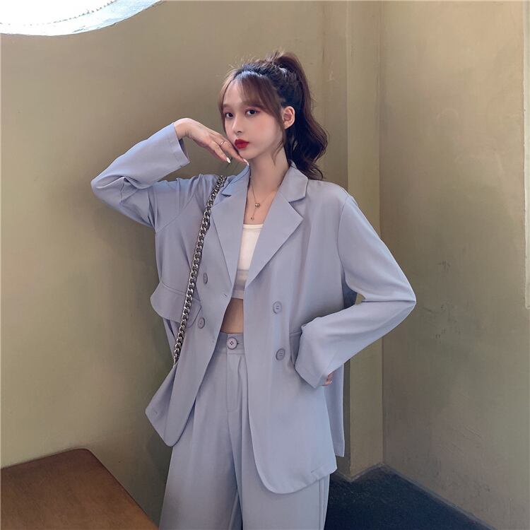 パープルスーツジャケット女性の春と秋のスタイルルーズスモールシンジャケット2021新しいダブルボタンカジュアルスーツ スプリング 春物 オータム 秋物 TB2 TB278220115501