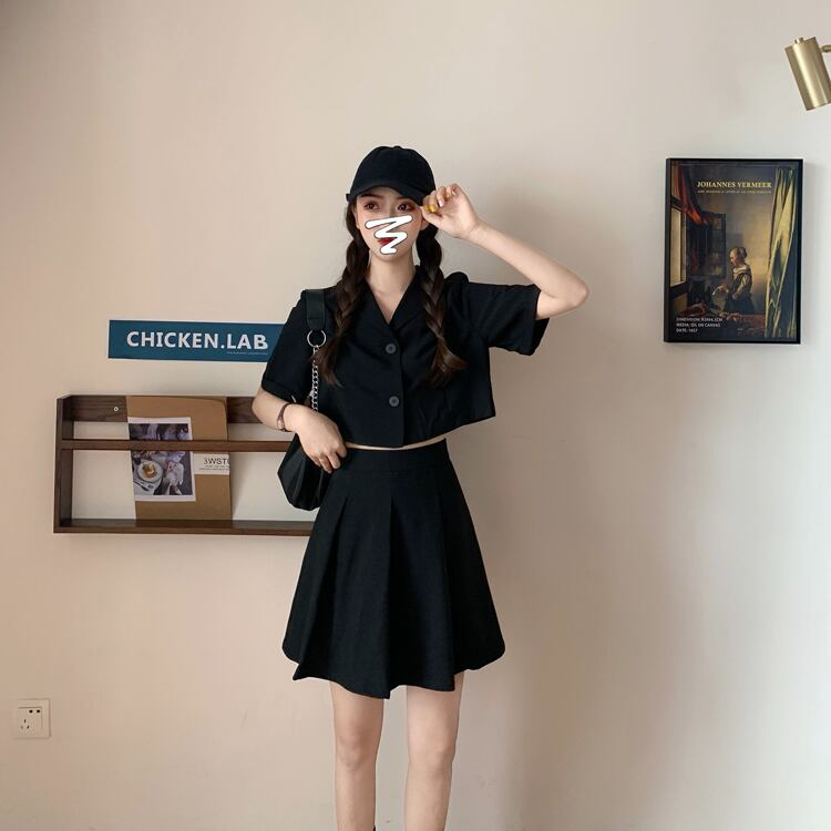 -ウエストAラインプリーツスカート2021年春夏ブラックJKスカートメスの新バージョンは薄くて用途の広いスカートでした スプリング 春物 サマー 夏物 TB2 TB241557901914