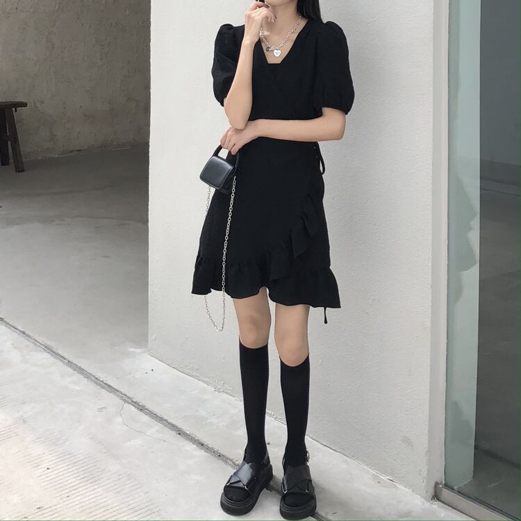フランスの気質デートの陰謀リトルブラックドレスplatycodon初恋ヘップバーンスタイルレトロVネックドレス女性の夏 サマー 夏物 TB2 TB29793787860