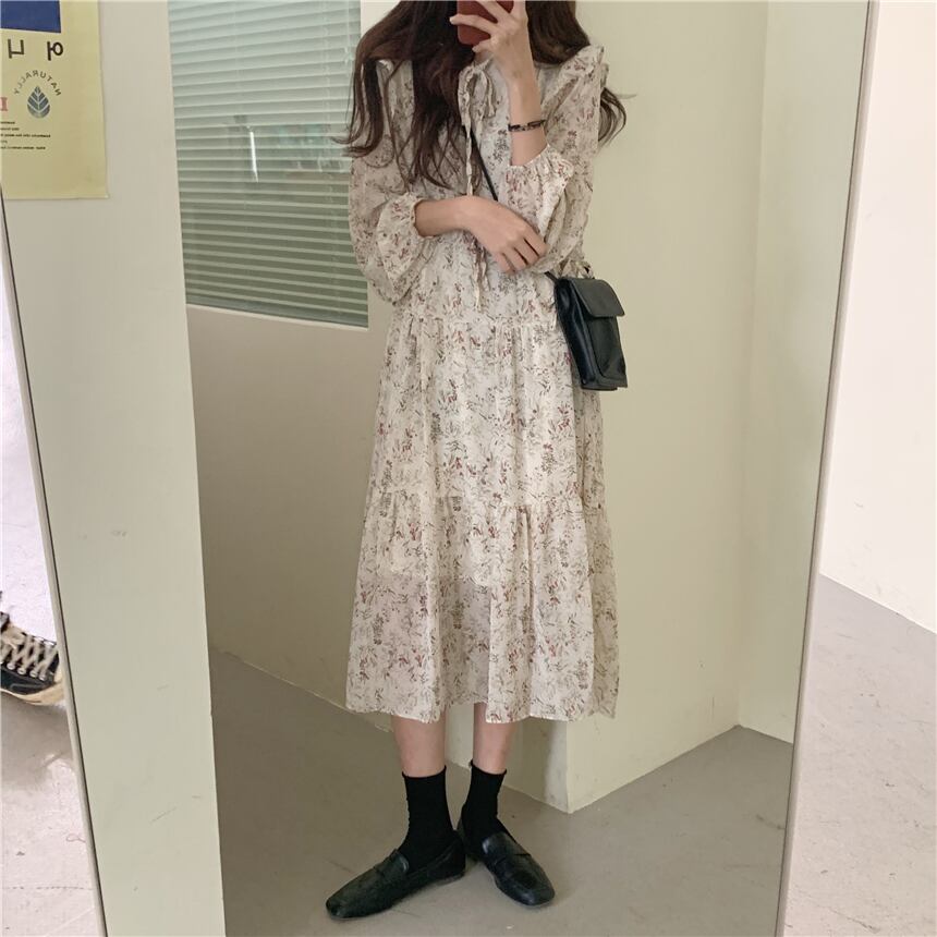 2021年の新しい春と秋フランスのレトロなシフォン花柄のドレススーパー妖精の夏 スプリング 春物 サマー 夏物 オータム 秋物 TB2 TB261822133891