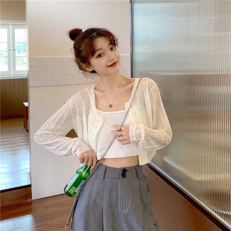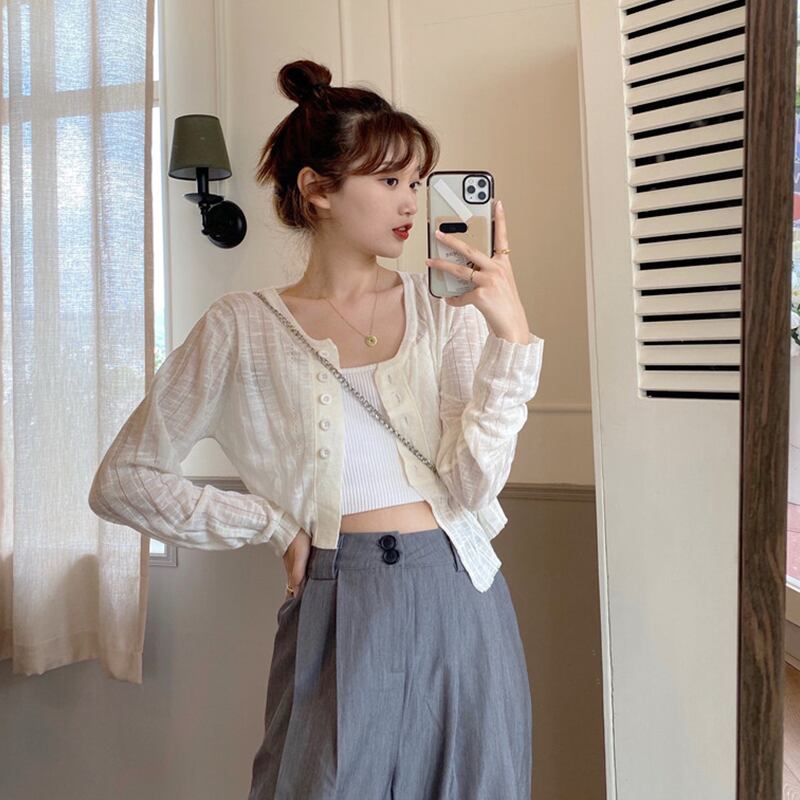 ショートアイスシルクカーディガンジャケットレディースニットトップス薄い春と夏の日焼け止め服痩身bm風長袖トップス ロング スプリング 春物 サマー 夏物 TB2 TB254737488250