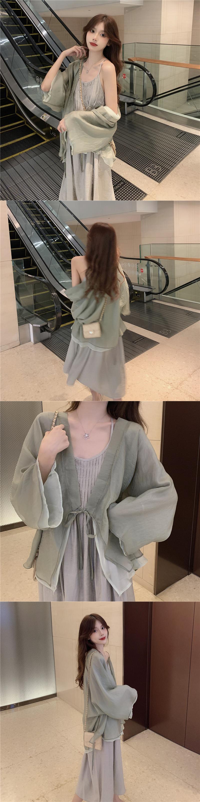 色:アプリコットドレス,アプリコットコート,グレーグリーンのキャミソール,灰緑色のコート