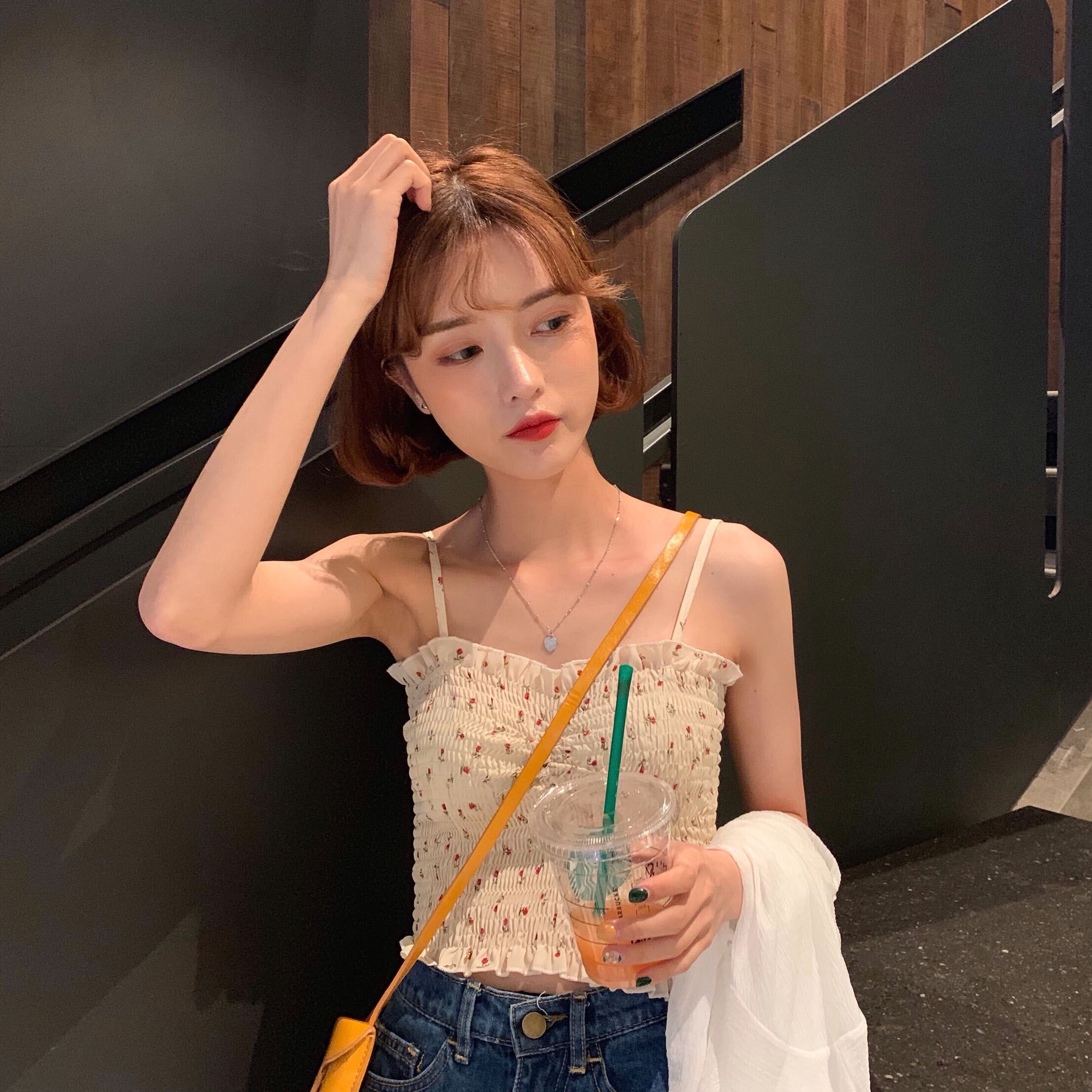 ヒョナスタイルのネットレッドフローラルスモールキャミソールの女性は香港スタイルのセクシーな鎖骨トップインタイドを着用 花柄 TB2 TB280193814315