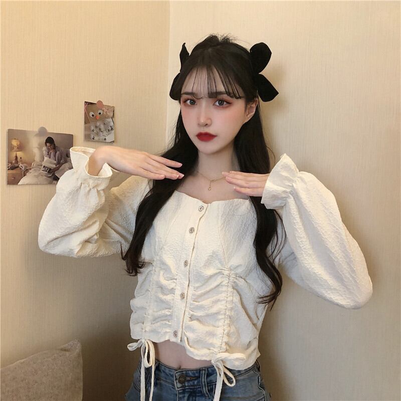 2021年初春新しいレトロな巾着スリムショートシャツレディースウエストスモールアッパー服デザインセンスニッチ スプリング 春物 TB2 TB272961216309