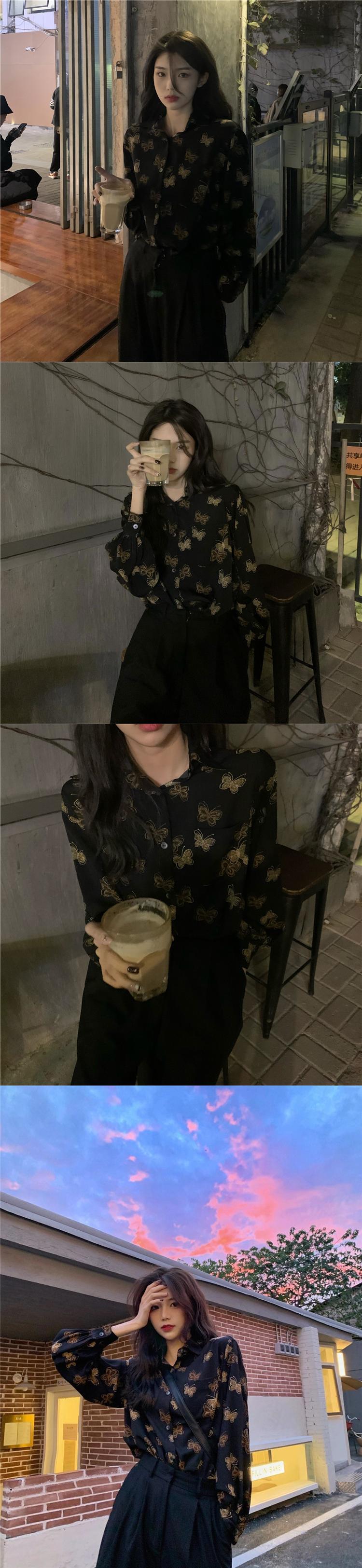 2021年春の新作黒シャツ女性デザインセンスニッチレトロ香港スタイルハイレベルな軽快感成熟フレンチブラウス ブラック スプリング 春物 TB2 TB25822699112