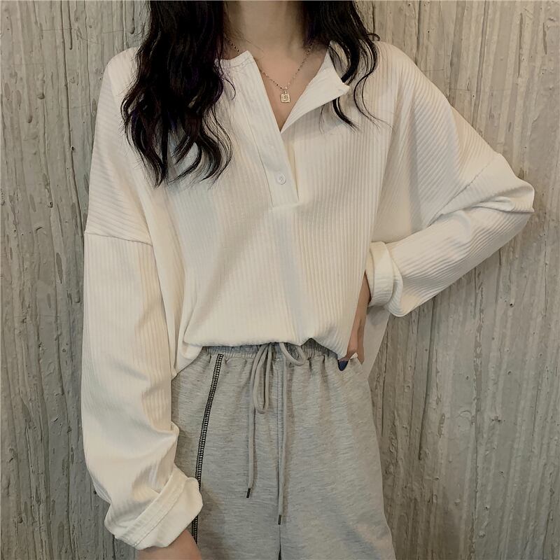 2021年春の新しい女性用Tシャツのボトミング、長袖の秋の服、ニットセーター、ワイドレッグパンツのショートスタイル ロング スプリング 春物 オータム 秋物 TB2 TB241413898366