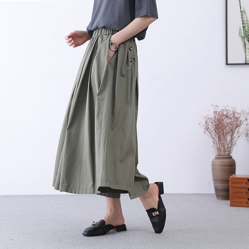 -ウエストワイドレッグパンツレディース2021新しいルーズコットンストレートレッグクロップドパンツは薄くてワイルドなカジュアルパンツの夏服でした サマー 夏物 TB2-9 TB2-974328291107