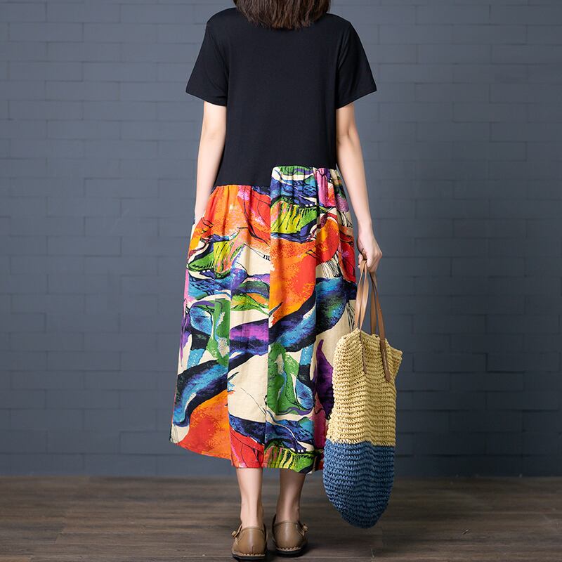 2021年春のニュースタイルレディースリテラシーラージサイズルーズラウンドネック長袖ヒットカラープリントエスニックスタイルコットン&リネンドレス ロング 大きめサイズ スプリング 春物 Oネック TB2-12 TB2-1234553131041