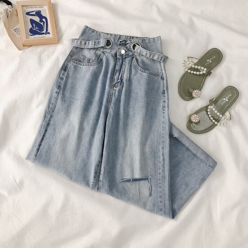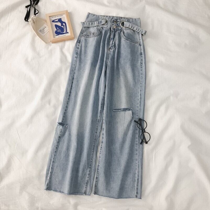 破れたジーンズワイドレッグパンツ女性春ハイウエストドレープロースストレートネットレッドパンツモップパンツinsスーパーファイア ハイウェスト スプリング 春物 ワイドパンツ TB2-6 TB2-635949780096