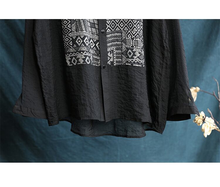 文学的でカジュアルなルーズで薄い幾何学模様の黒のテンセルコットンシャツ女性の長袖の薄い2020年夏の日焼け止め服 ロング ブラック サマー 夏物 TB2-11 TB2-1165784804916