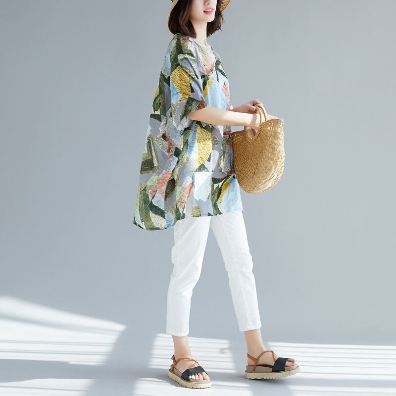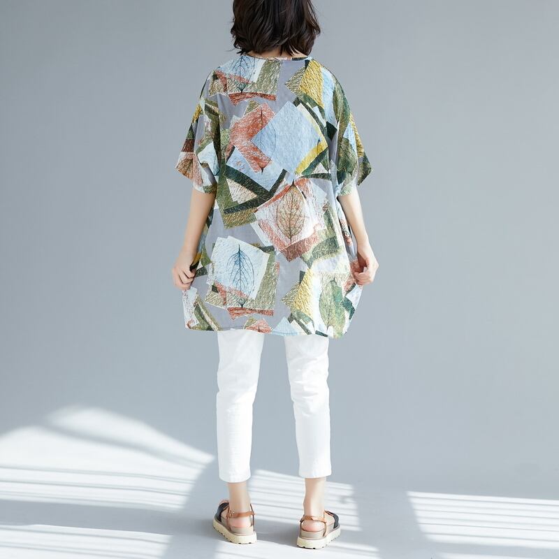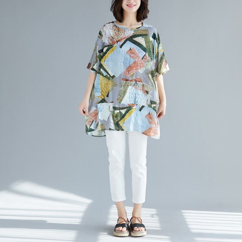 2021年夏の新しいスタイル200kg脂肪MMルーズリテラリーコットンとリネンラージサイズ半袖プリントTシャツ女性 大きめサイズ サマー 夏物 TB2-12 TB2-1256241662427