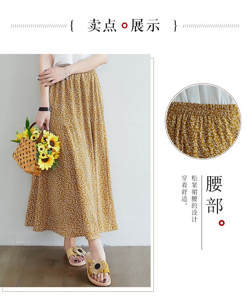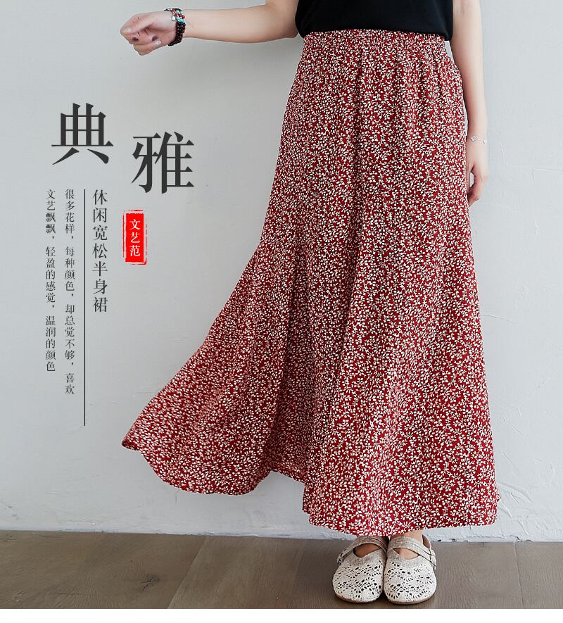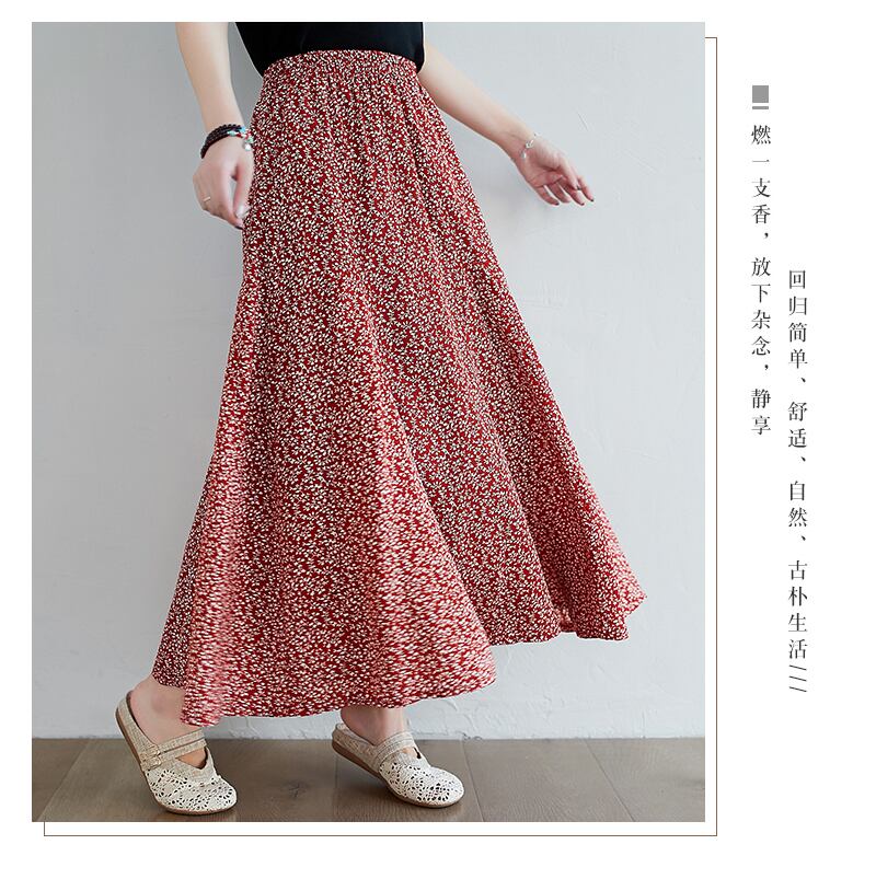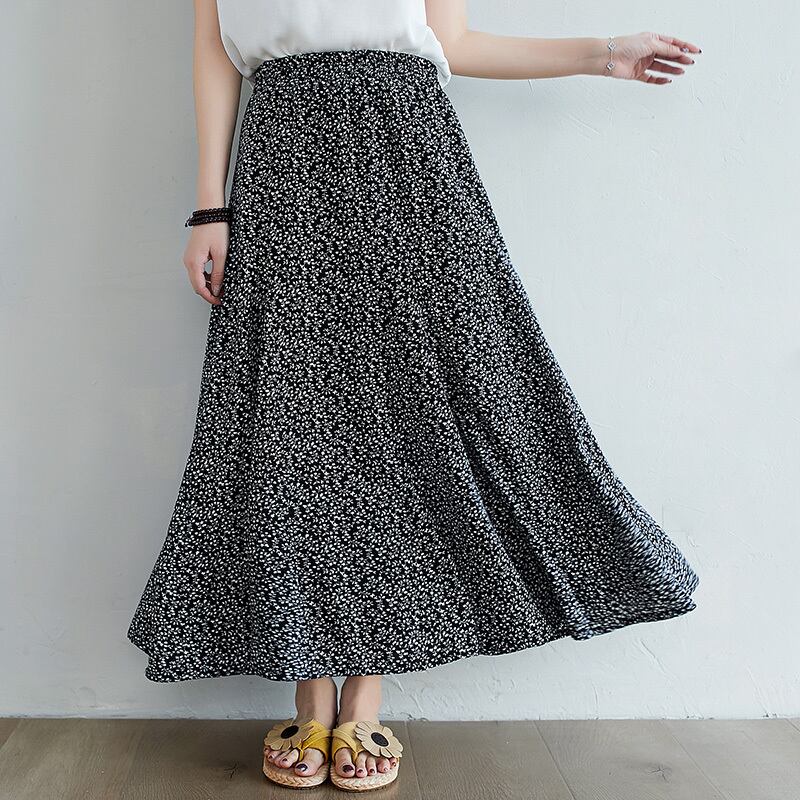 2021年の新しいレトロな文学プラスサイズの女性用のルーズで用途の広いカジュアルカジュアル年齢の削減と薄い花柄のスカート 大きめサイズ TB2-12 TB2-1287485639576