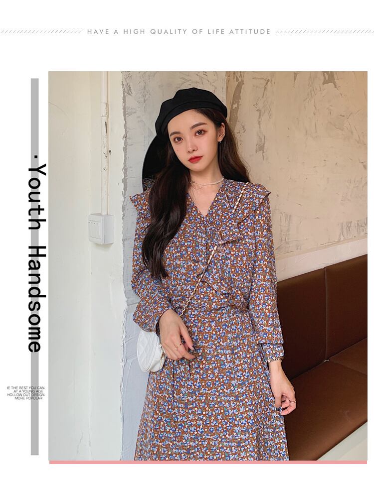 ファットシスターエイジリダクション長袖シフォンワンピースLサイズVネックプラティコドンロングスカート200kgレトロ薄手フローラルスカート 大きめサイズ 花柄 TB2-10 TB2-1074018285460