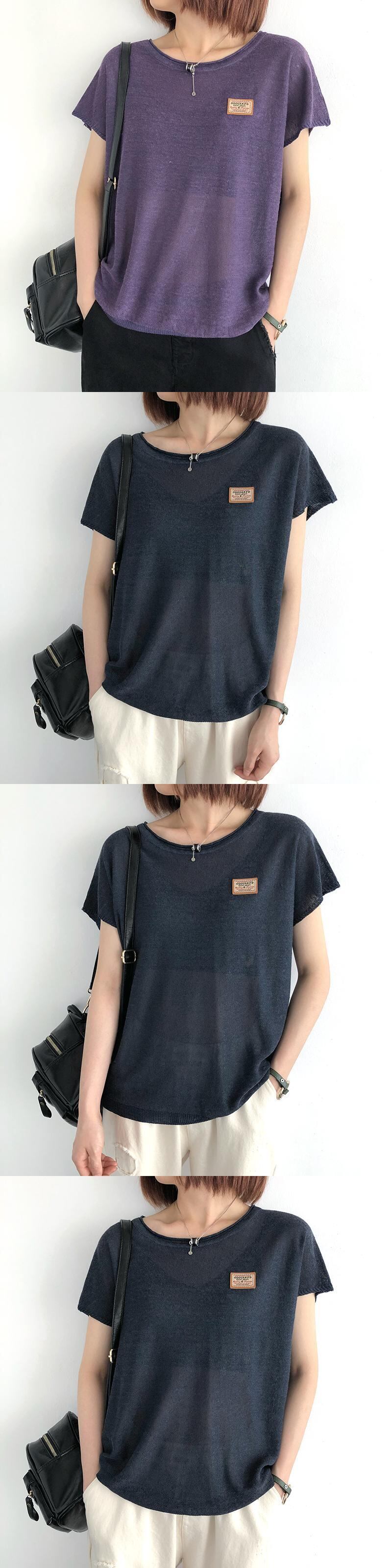 ラミーニットTシャツレディース半袖薄手ルーズボトミングシャツ夏新作文芸ラウンドネックプルオーバーブラウス サマー 夏物 Oネック TB2-9 TB2-939408107567