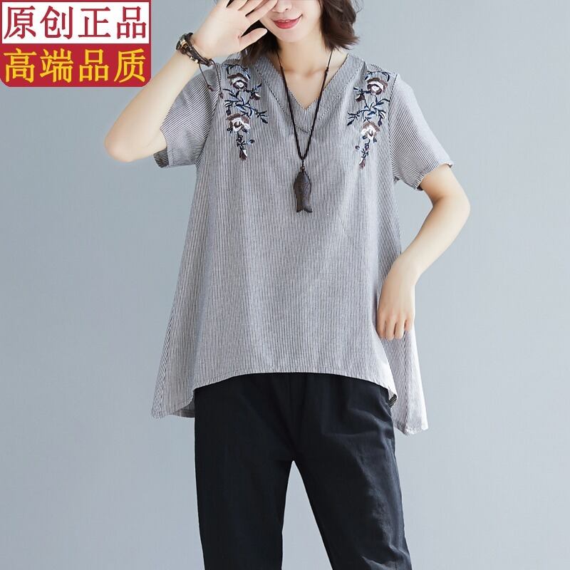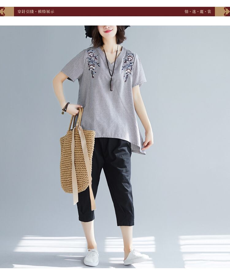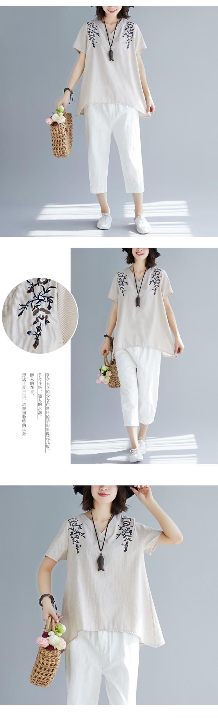 エスニックスタイルの女性の刺繡コットンとリネンのブラウスルーズなレトロな文学とアートVネック2021年夏の新しい半袖シャツTシャツ 刺繍 サマー 夏物 TB2-12 TB2-1274544874479