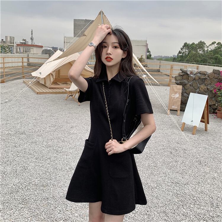 ラージサイズウエスト気質半袖Tシャツスカート女性太った姉妹レトロ洋服カバー肉リトルブラックドレス200kg 大きめサイズ TB2-10 TB2-1082404119870